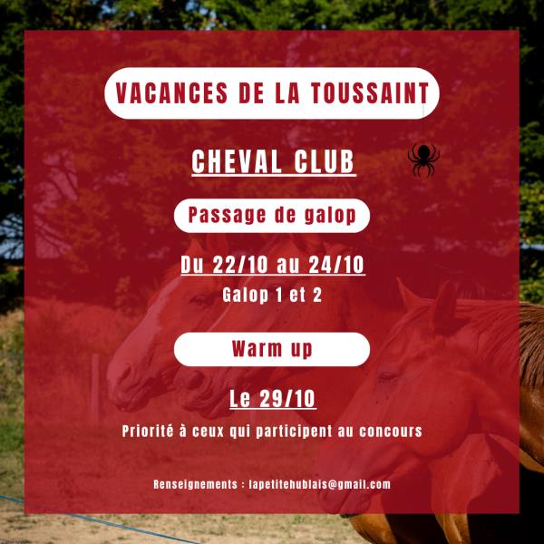 La petite hublais vous accueille, pendant les vacances de la Toussaint, à des stages d'équitation avec passage de galop possible.